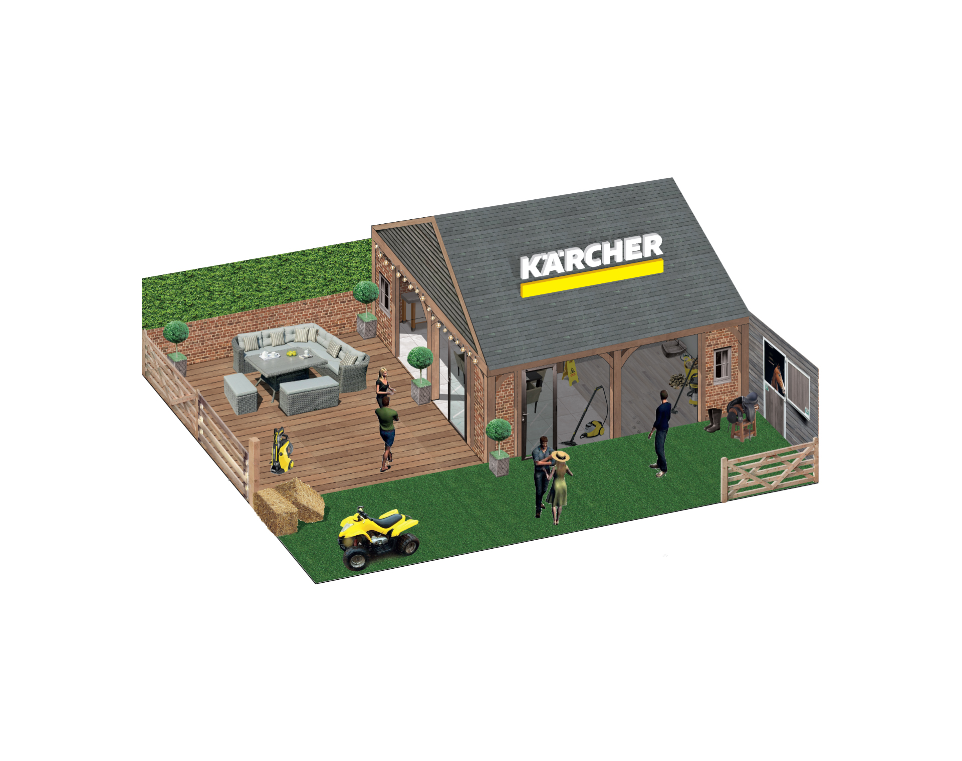 We always look for cost down reduction. We built the house specifically for the Game Fair, an outdoor event. It was also intended to use at Grand Designs, an indoor exhibition, proving equally successful. Karcher were able to deliver a unique and exclusive experience where customers could truly learn and interact with their products.