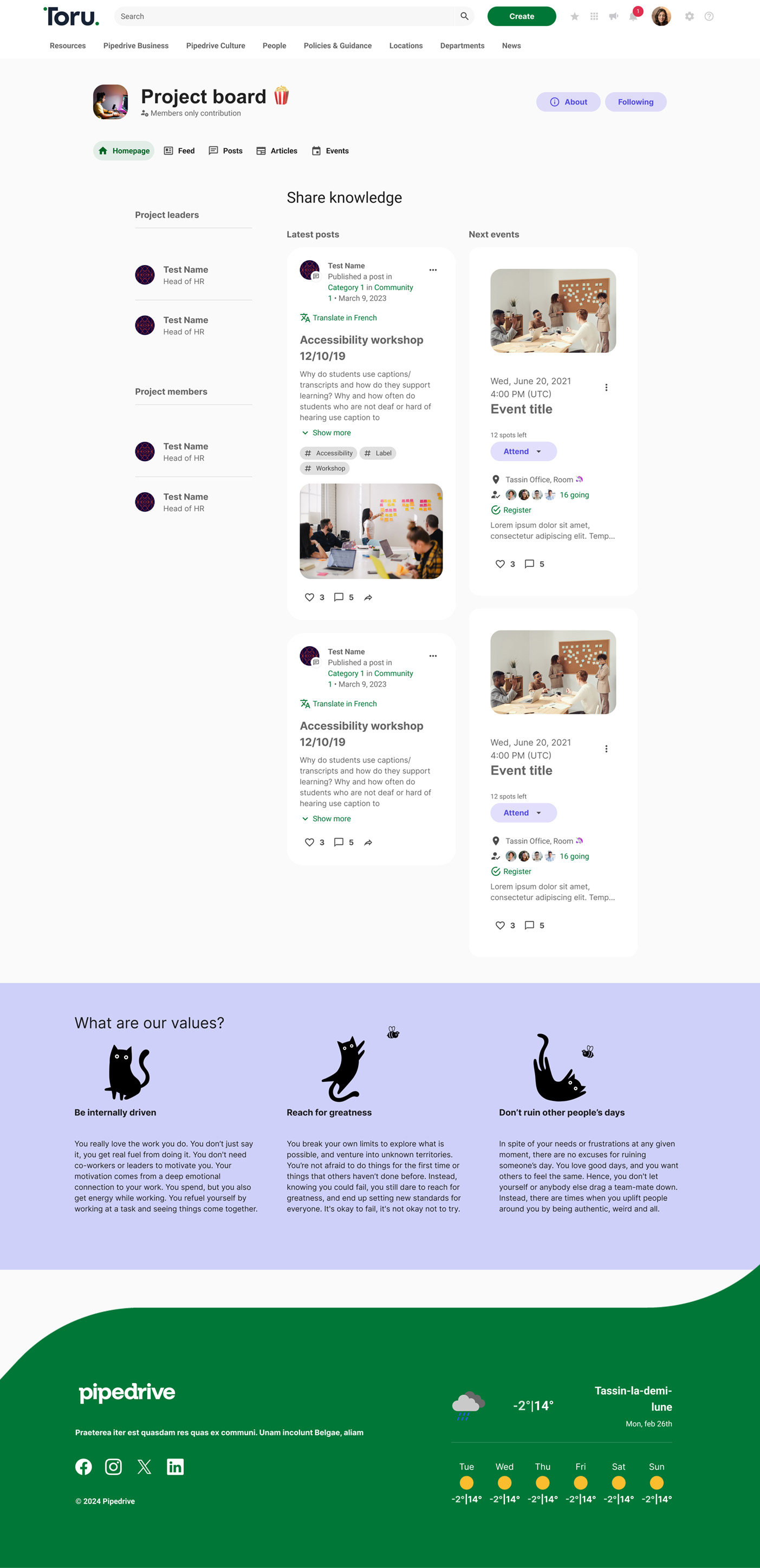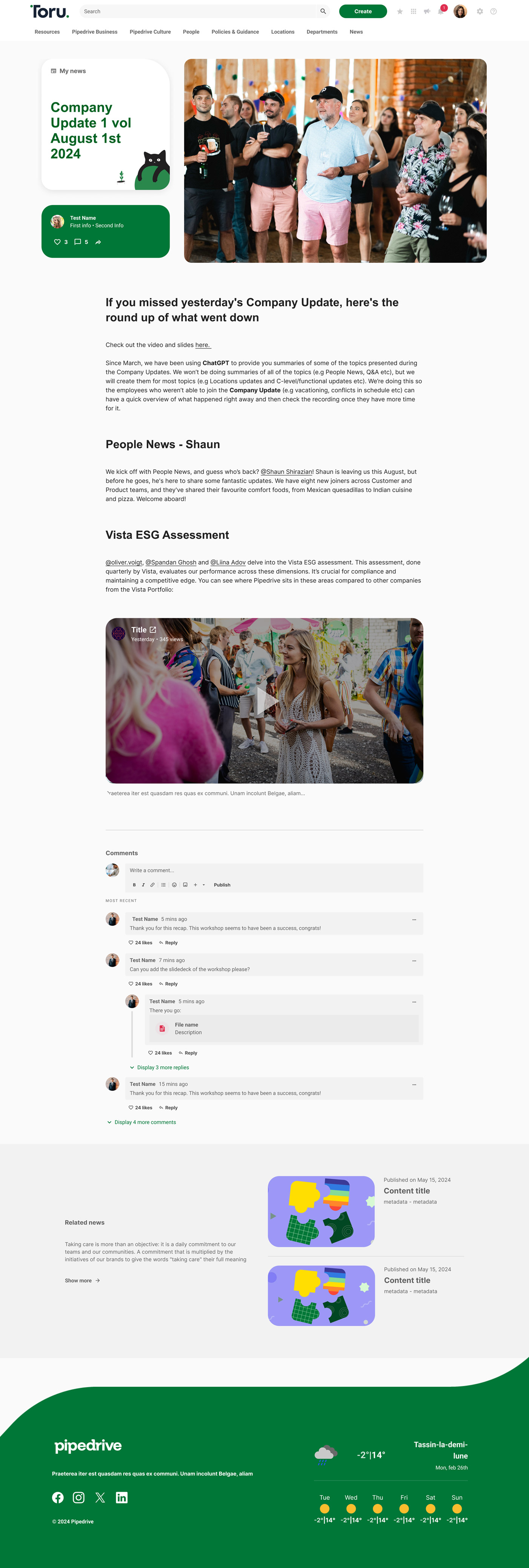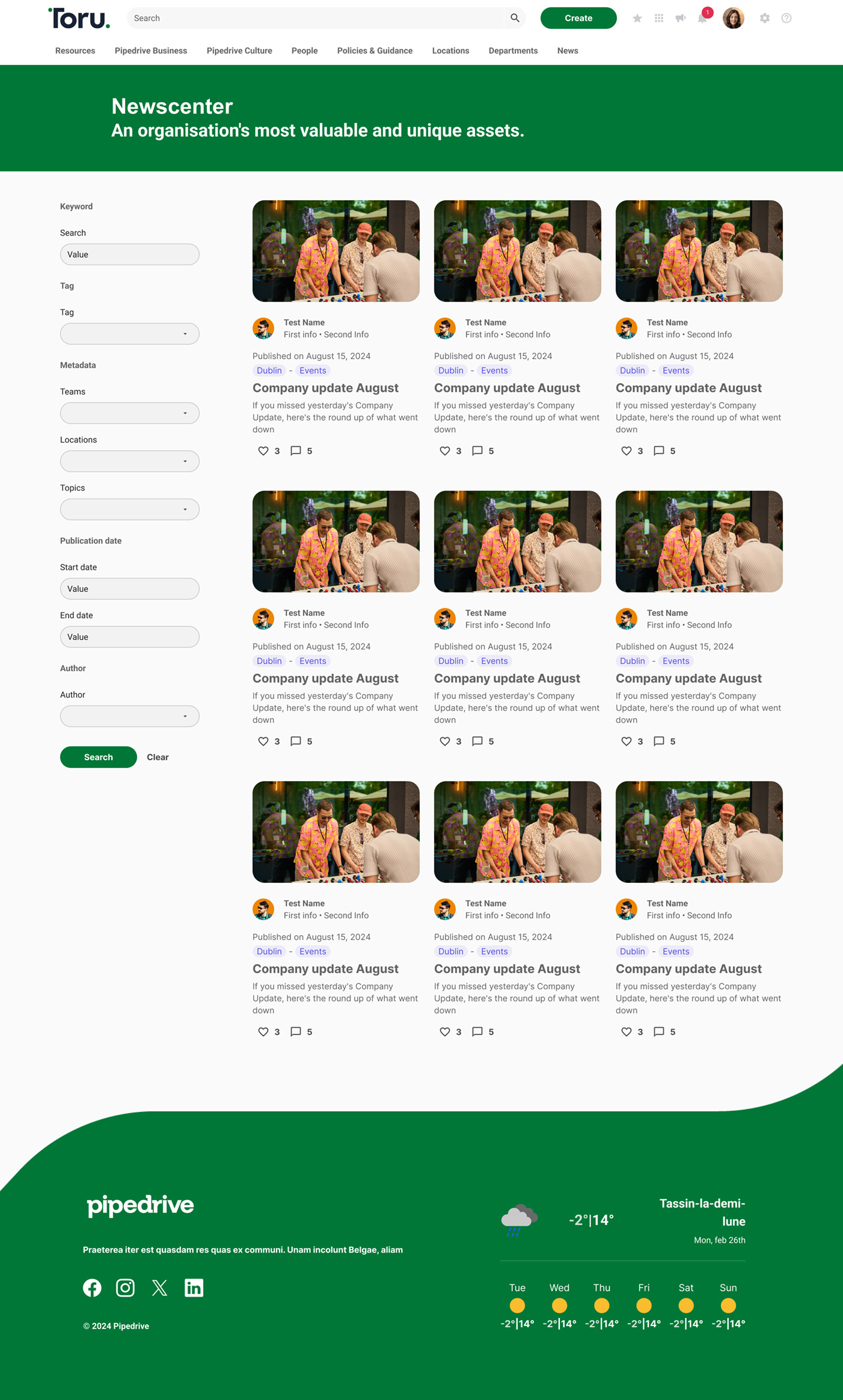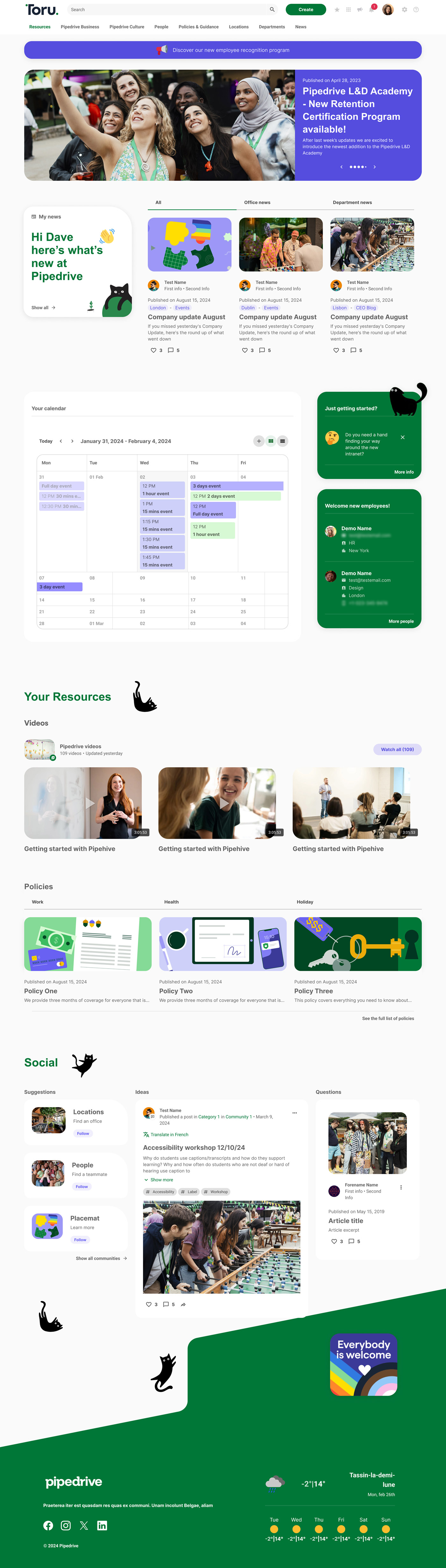 We’re thrilled with the outcome of Toru, our new intranet platform. The collaboration with Mosaique has been seamless, with their expertise and commitment making it possible to deliver a fully tailored solution in just three months. Toru has transformed the way we connect and share information across the organisation, and we’re excited to see Pipedrivers embracing it so enthusiastically—we’ve already hit 100% adoption! This platform is a major step forward in creating a people-first experience at Pipedrive, helping us work more collaboratively and efficiently than ever – no excuses!”