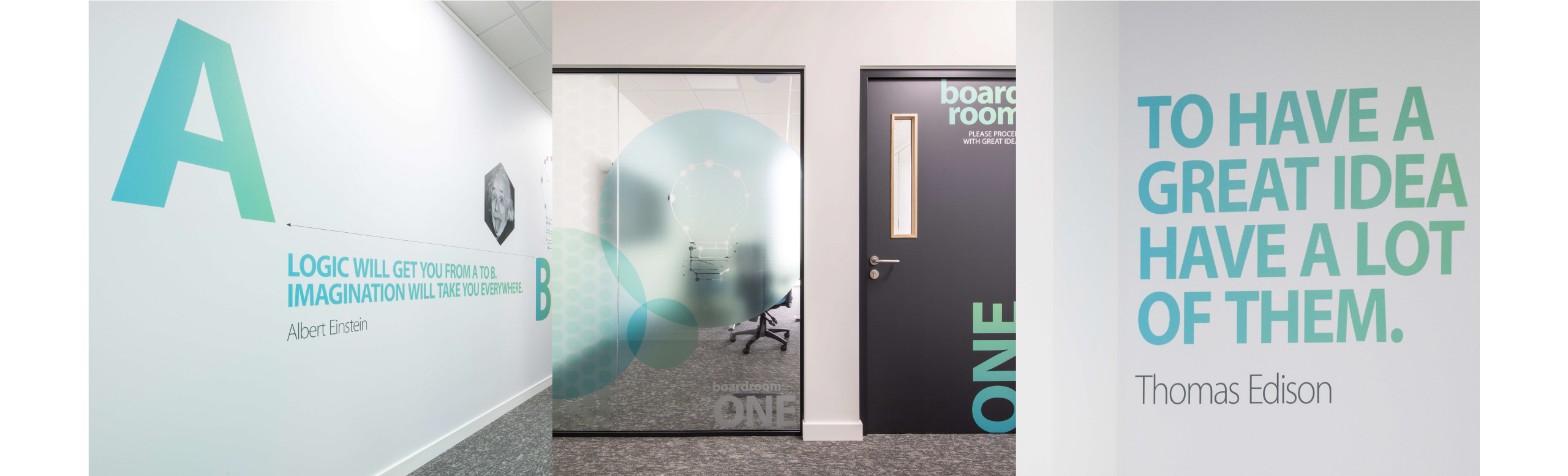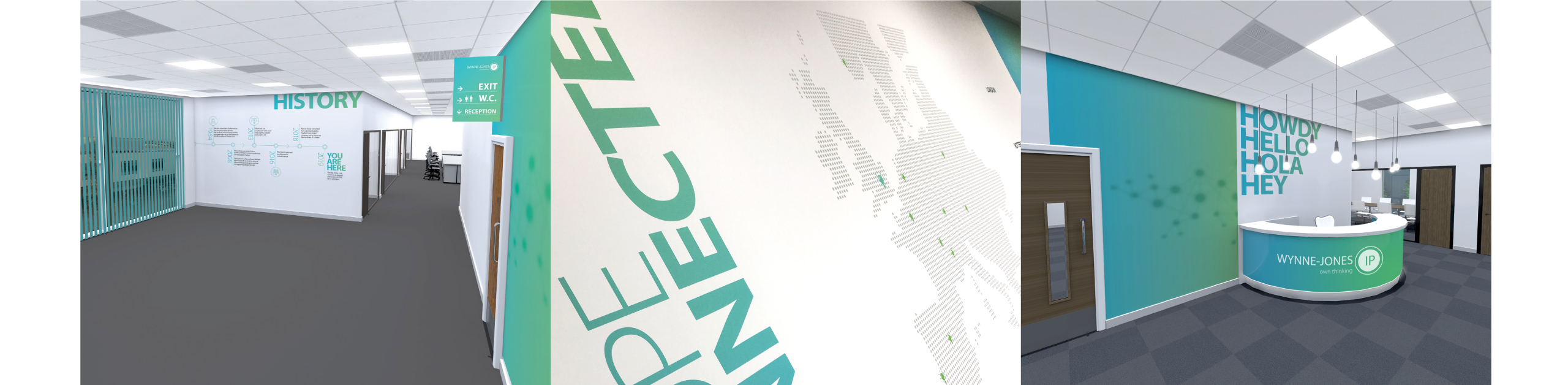 Our relationship with Wynne-Jones allowed us to really immerse ourselves in the process. By making sure we were able to manifest the brand through graphics, lighting and themes; we captured the essence of their brand. The result was a workspace brought to life with zonal graphics, signposting, and a bespoke reception area. As well as a desk that welcomes visitors with a real wow factor! From start to finish we enjoyed working on this office branding project.